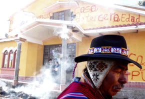 Folgende Informationen sind aus Onlineartikel der Zeitungen „El Deber“, „El nuevo Dia“ und „La Razon“ zusammengestellt. Am 7. März wurde das Haus von Víctor Hugo Cárdenas gestürmt. Es liegt im Departamento de La Paz, Provinz Omasuyos im Dorf Sankajahuira (nahe des Titicaca Sees). Die Agresoren wurden durch den Bürgermeister des Regierungsbezierks Achacachi, Eugenio Rojas, motiviert und haben sich bei der Aktion auf das neu geltende Recht („justicia comunitaria“) berufen. Es räumt den indianischen Komunen weitesgehende Rechtsfreiheit nach überliefertem Recht ein, und dies parallel zu den geltenden Gesetzen. Dabei wurde die Wohnung ausgeraubt, zerstört, die Bewohner verprügelt und vertieben und das Haus besetzt. Die aufgebrachte Menge (500 Leute) wirft V. H. Cárdenas vor, er habe seine Verpflichtungen in der Dorfgemeinschaft vernachlässigt und habe sich nicht für die Provinz Omasuyos eingesetzt. Die Polizei (weder vom Dorf noch aus der nächsten Stadt) war nicht bereit die Familie zu schützen. Cárdenas ist Aimara wie Morales und wae Vizepräsident 1993 bis 1997 von Bolivien unter Präsident Sanchez de Lozada und bildet derzeit Teil der Oposition von Evo Morales. Er hat vor der Volksabstimmung über die neue Verfassung für deren Ablehnung geworben. |